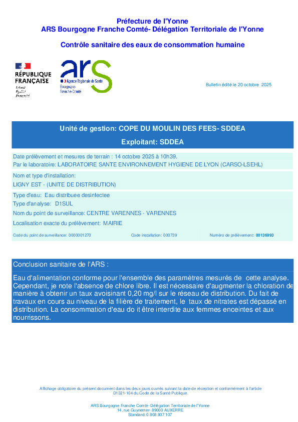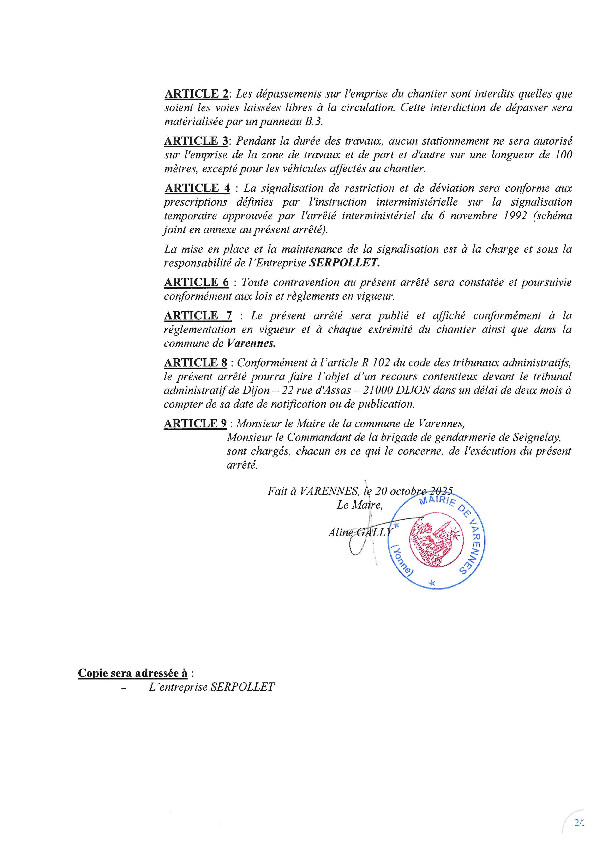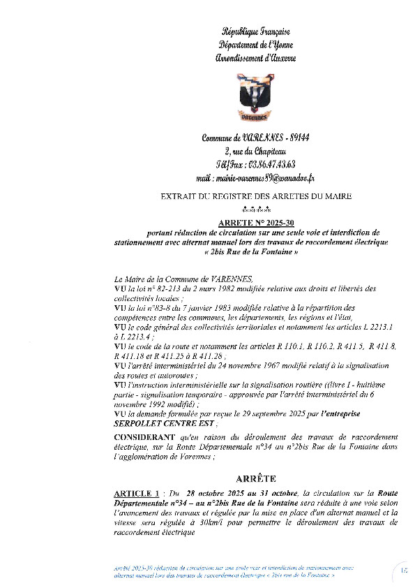 arrêté signé le 17/10/2025 et mis en vigueur le 22/10/2025 (PDF - 137 Ko - nouvelle fenêtre).