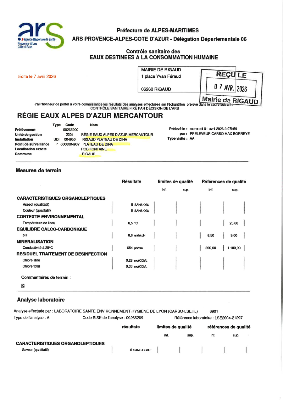 REGIE DES EAUX ALPES AZUR MERCANTOUR