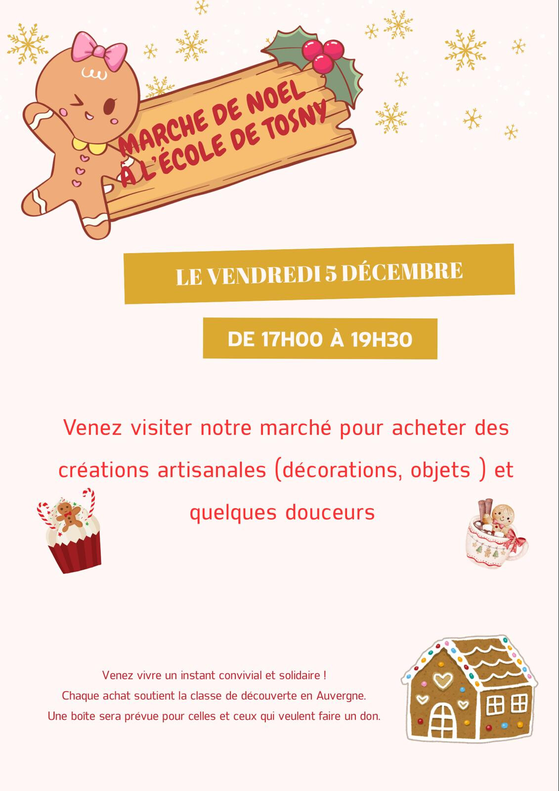 - vendredi 5 décembre à partir de 17h : marché de Noël de l'école de Tosny, à la salle Jean Erisay.