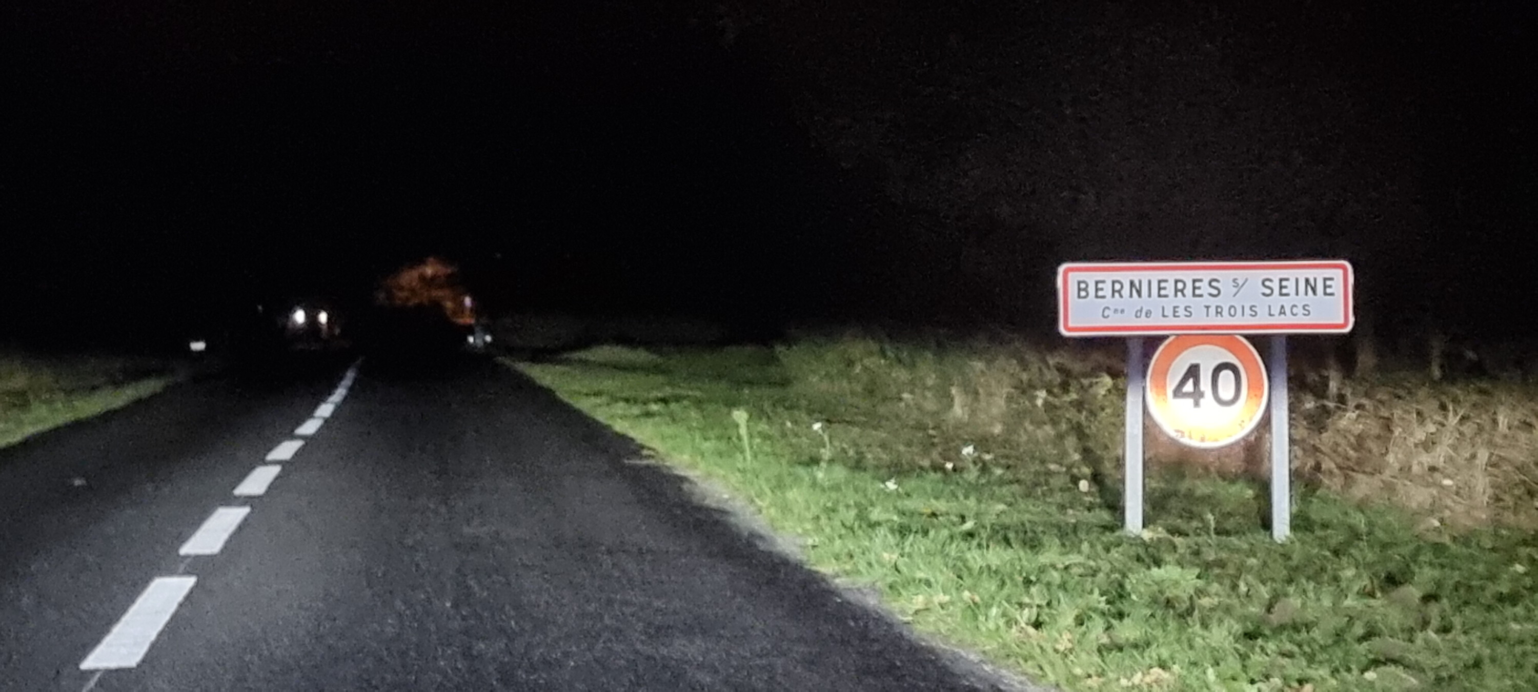 Depuis une semaine, l'entreprise "La Signalisation routière" intervient ponctuellement sur la commune pour remplacer les panneaux EB10 EB20 d'entrée et sortie d'agglomération de la commune, pour y ajouter "Les Trois Lacs".