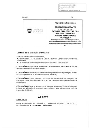 faisant suite à la fermeture temporaire du passage à niveau n°5, pour travaux sur le réseau SNCF.