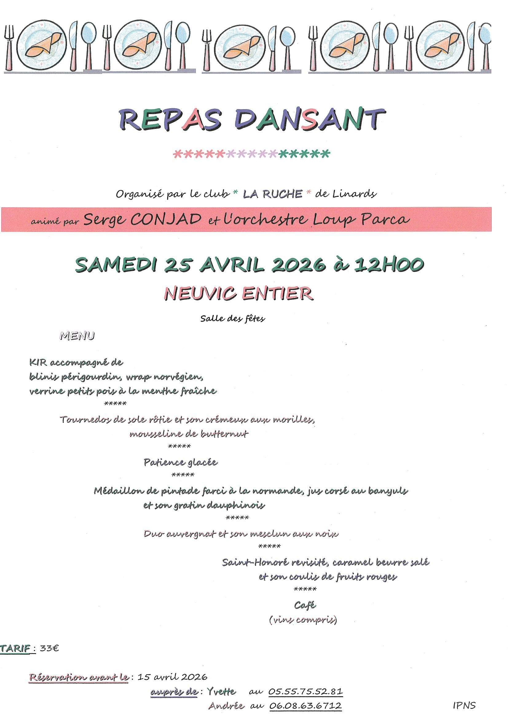 Réservations avant le 15 avril.
