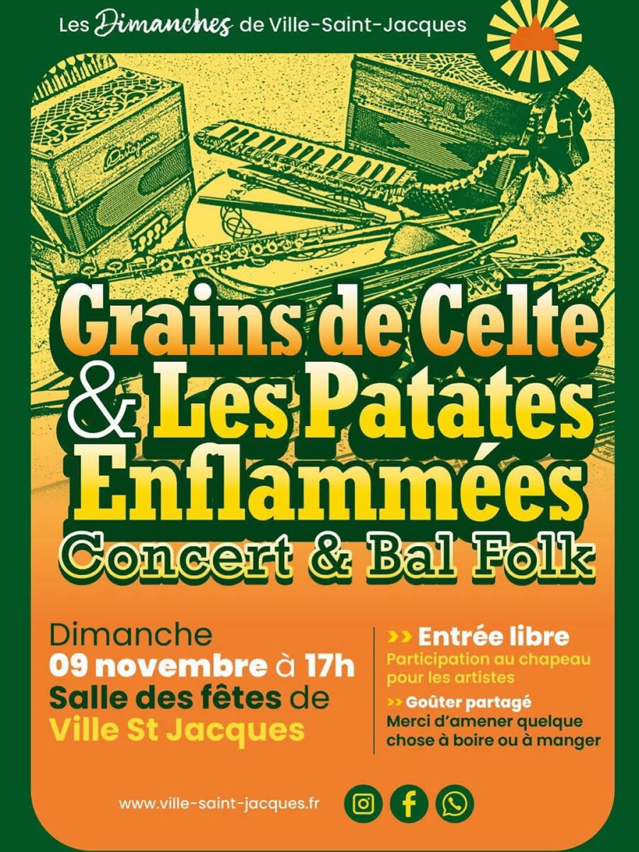 ce dimanche à Ville Saint Jacques. c est bal folk et concert !