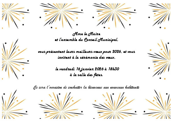 Mme le Maire et l'ensemble du conseil municipal vous adressent leurs meilleurs vœux pour 2026.