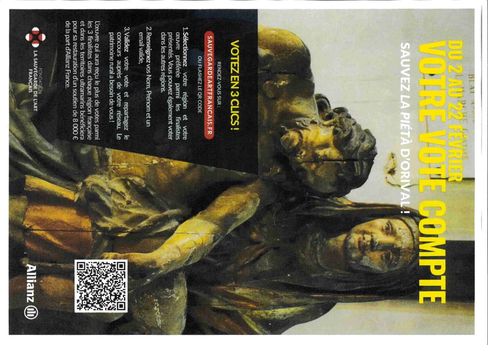 L’œuvre d'art "La Piétà" d'Orival que vous pouvez retrouver à l'église Saint-Georges est finaliste du concours présidé par la fondation La Sauvegarde de l'art Français et Allianz. 👏