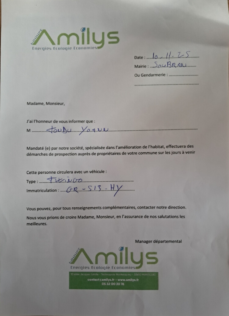 Ce monsieur peut se présenter à votre domicile, vous êtes libres de refuser ou d’accepter de répondre à ses questions.