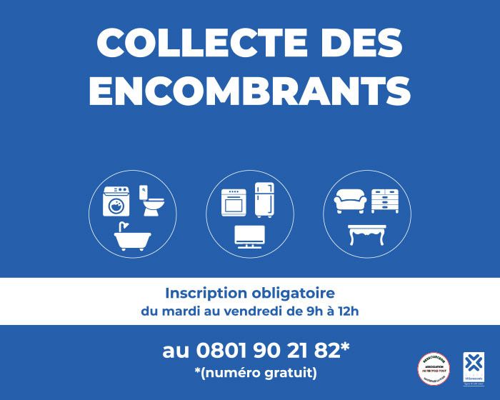 Un ramassage gratuit des encombrants (meubles, ferraille, gros électroménager, etc.) est organisé sur l'ensemble du territoire de l’Agglomération toutes les semaines.