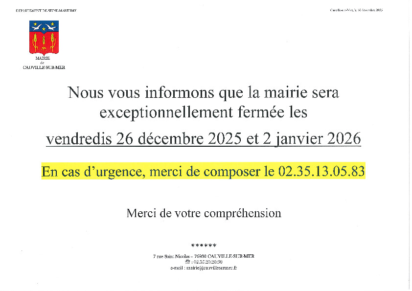 25 décembre 2025 : pas de collecte. Rattrapage le samedi 27 décembre.