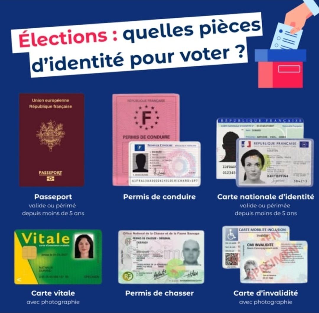 Rappel des pièces d'identité valables pour pouvoir voter :