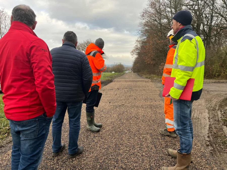 Réunion de chantier ce matin pour faire le point sur l’avancée des travaux de la piste reliant Bertrange à Guénange, en présence de nos élus, de l’Arc Mosellan, du chef de chantier et de l’équipe MATEC. Les nouvelles sont encourageantes : si les conditions météo restent favorables, le chantier devrait être terminé dans les délais. Nous remercions les habitants pour leur patience et leur compréhension durant cette période. Ce projet avance pour améliorer nos mobilités douces et renforcer les liaisons entre nos communes. Encore un peu de patience, et nous pourrons bientôt profiter d’un nouvel aménagement sécurisé et utile pour tous !