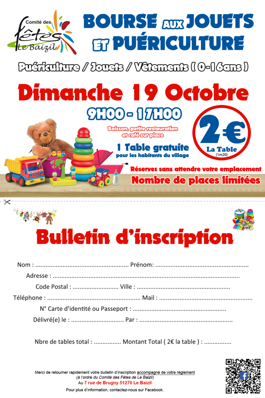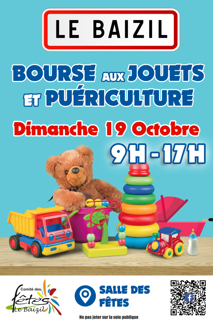 le Comité des fêtes - Le Baizil vous attend à partir de 𝟵𝗵𝟬𝟬 à la salle des fêtes de 𝗟𝗲 𝗕𝗮𝗶𝘇𝗶𝗹 (derrière la mairie) pour l'ouverture de sa bourse aux jouets et puériculture 🍼⚽️🧸👕