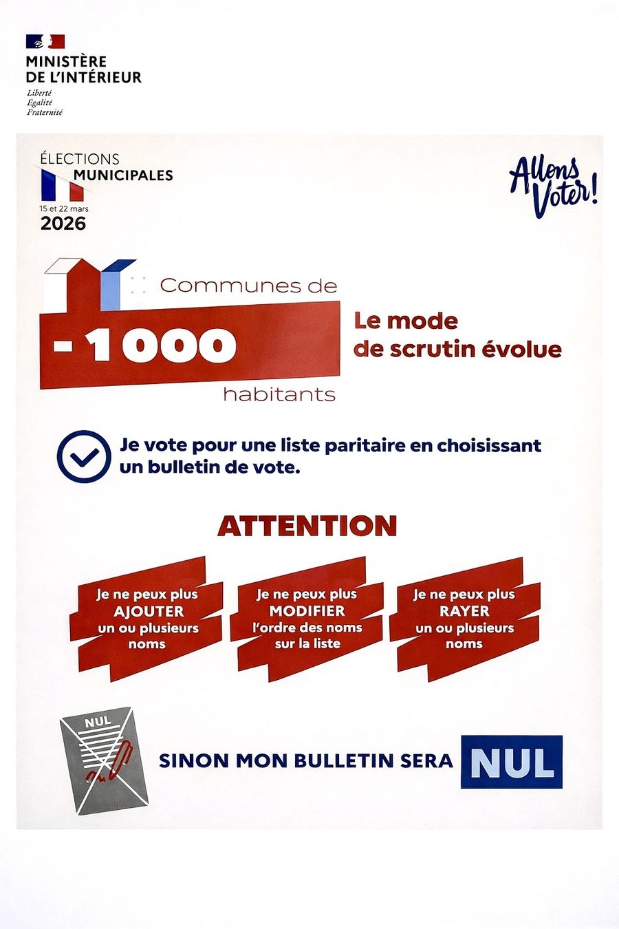 Nous constatons avec regret que l’affiche de la seule liste candidate aux élections municipales, qui avait été installée sur le panneau électoral, a été retirée.