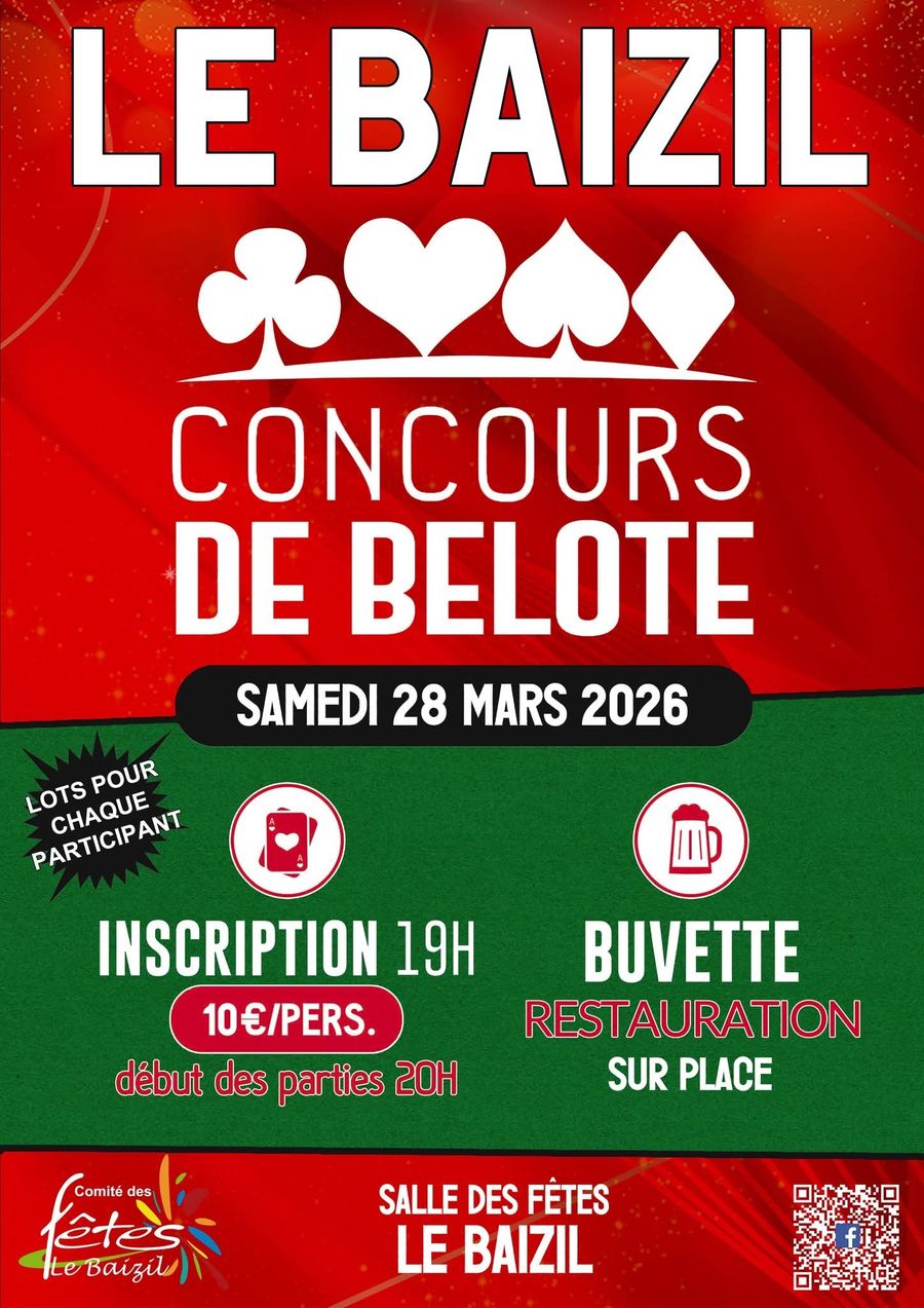 Le Comité des fêtes - Le Baizil vous donne rendez-vous pour une soirée placée sous le signe de la convivialité, des cartes… et peut-être de la victoire ! 🏆💪