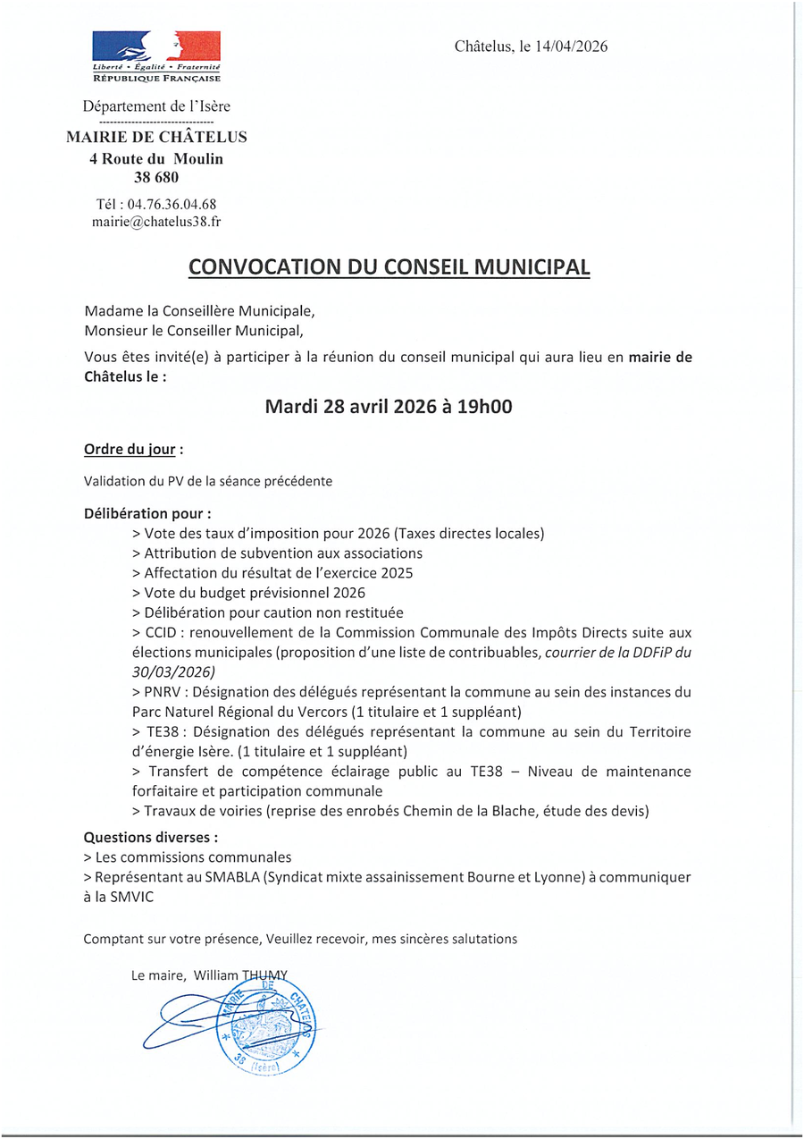 Dimanche 26 avril, 17 heures : salle des fêtes de Châtelus