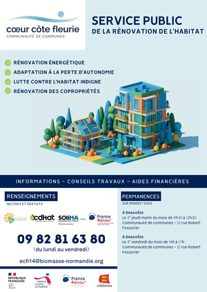 Pour améliorer l’efficacité énergétique de votre logement ou l’adapter à une perte d’autonomie, il suffit d’appeler le 09 82 81 63 80. Un conseiller vous guidera en fonction de votre situation vers l’une des permanences tenues au siège de la Communauté de Communes (12 rue Robert Fossorier, 14800 Deauville) :