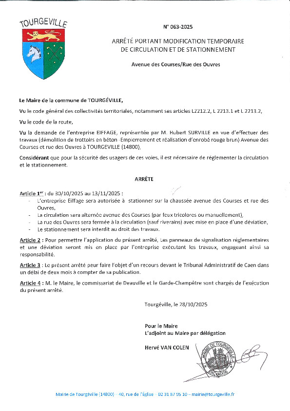 Vous trouverez ci-joints, l'arrêté et le plan concernant le Marathon International InDeauville qui se déroulera les 15 et 16 novembre prochain.