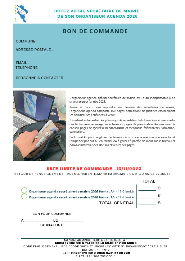 🧐 Les commandes personnelles sont possibles. Paiement par chèque à l'ordre de l'ADSM 17