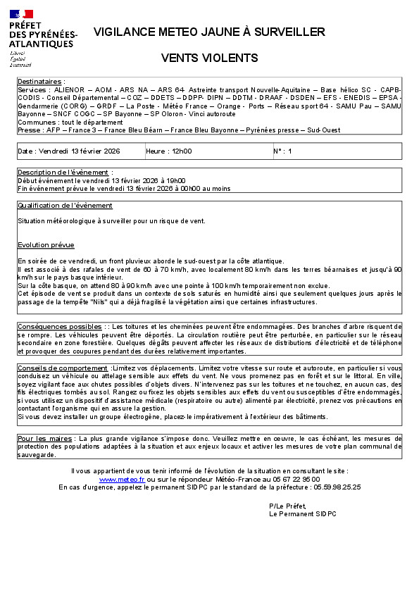 Alerte du 13/02/2026 à 12:18