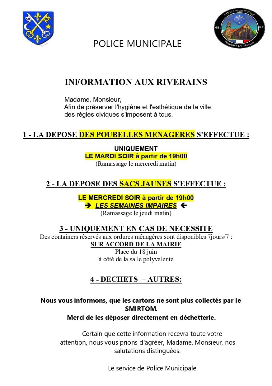 Pour toutes informations complémentaires vous pouvez contacter le service de la Police Municipale au 02.38.96.13.90.