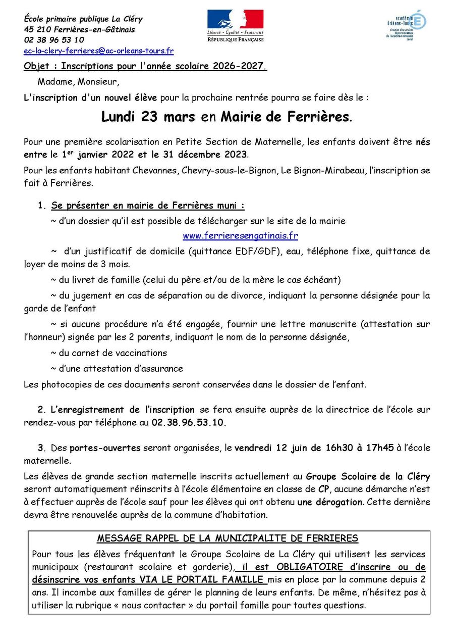 Elle se font en Mairie de Ferrières-en-Gâtinais.