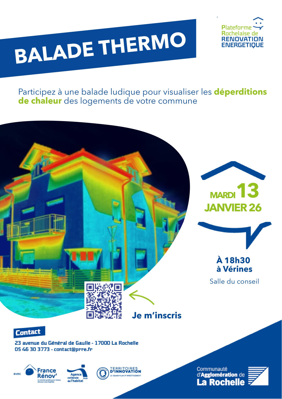 🤝En partenariat avec la Plateforme Rochelaise de Rénovation Energétique, l’Agglo vous propose une balade thermographique sur la commune de Vérines.