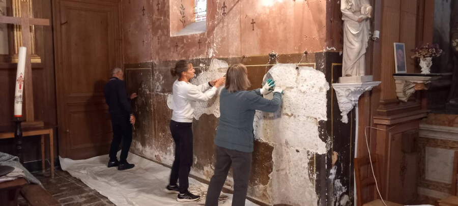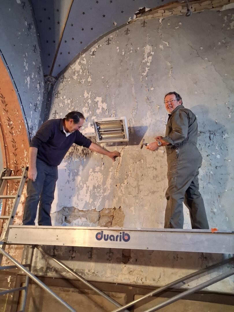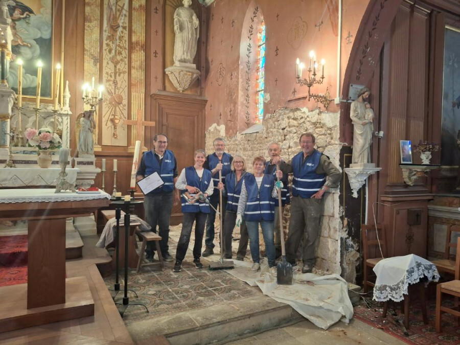 La commune s'est engagée dans l'Heure civique. C'est dans ce cadre que, samedi dernier, quelques bénévoles munis de marteaux, burins et spatules ont entrepris de rénover le transept de notre église .