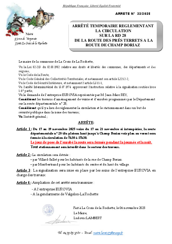 Ci-joint l'arrêté de circulation pour la 1ère période du 03 au 14 nov.