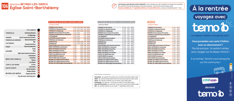 Vous trouverez ci-dessous les horaires de bus de la ligne 106