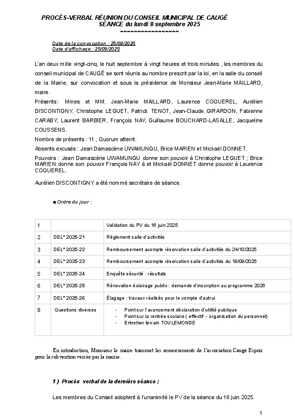 Tous les comptes rendus et notes infos sont sur le site internet de la commune de Caugé ainsi que les dernières informations (Le 56, urbanisme, arrêtés, menus cantine, Doctobus, ...)
