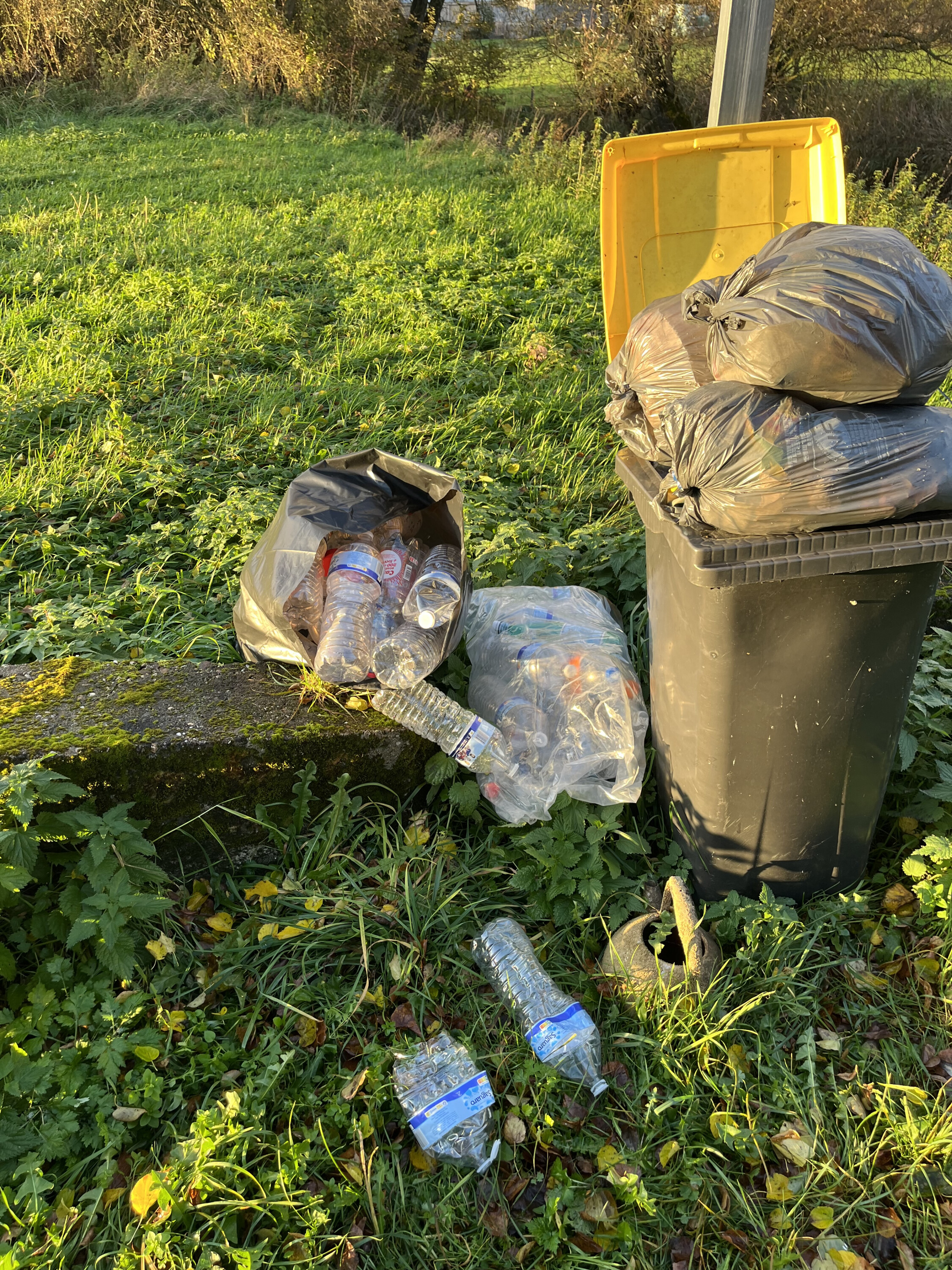 Une cinquantaine de bouteilles en plastique et sept sacs poubelles, venus d’ailleurs, abandonnés en pleine nature au bord de l’Othain.