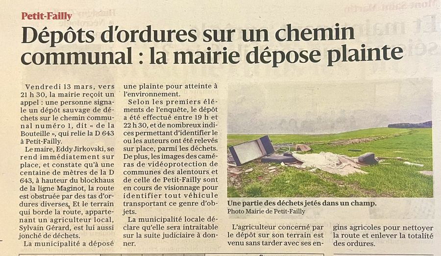 Il sâagit malheureusement dâune nouvelle preuve dâincivilitĂ© qui porte atteinte Ă notre cadre de vie et au respect de notre commune.