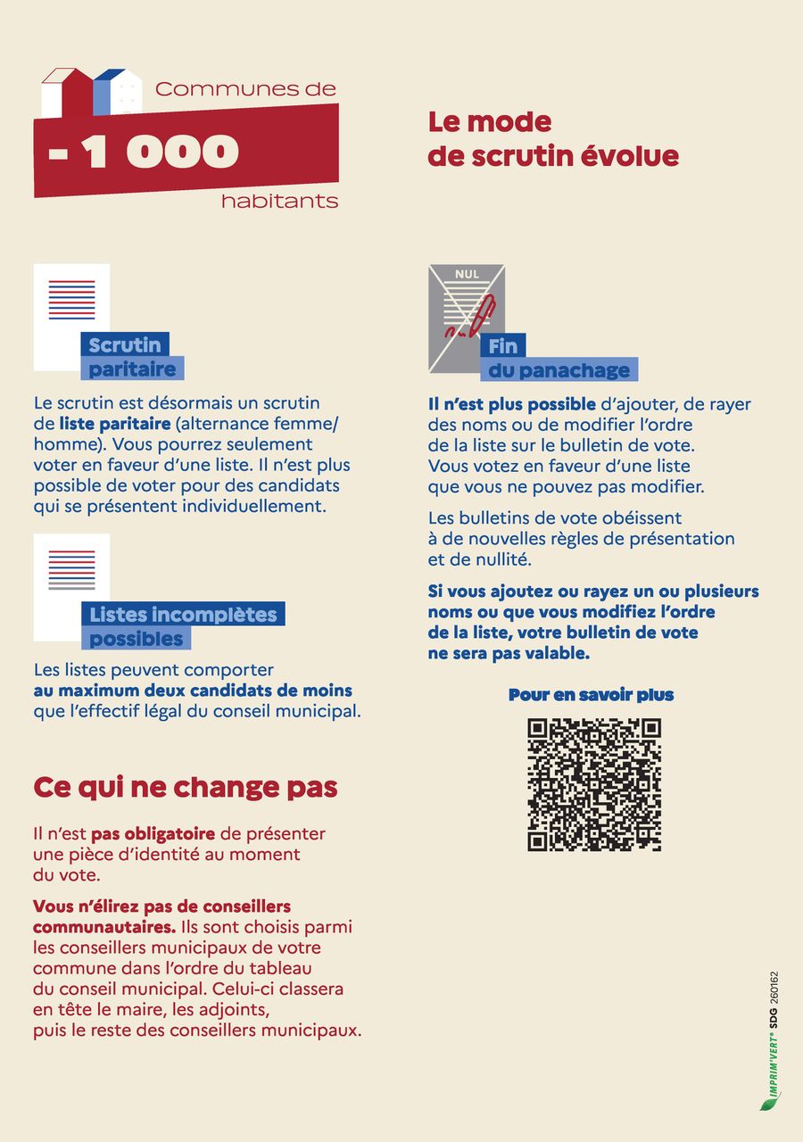 ℹ️ Ces nouvelles règles visent à renforcer la parité, la clarté du scrutin et la stabilité des conseils municipaux.