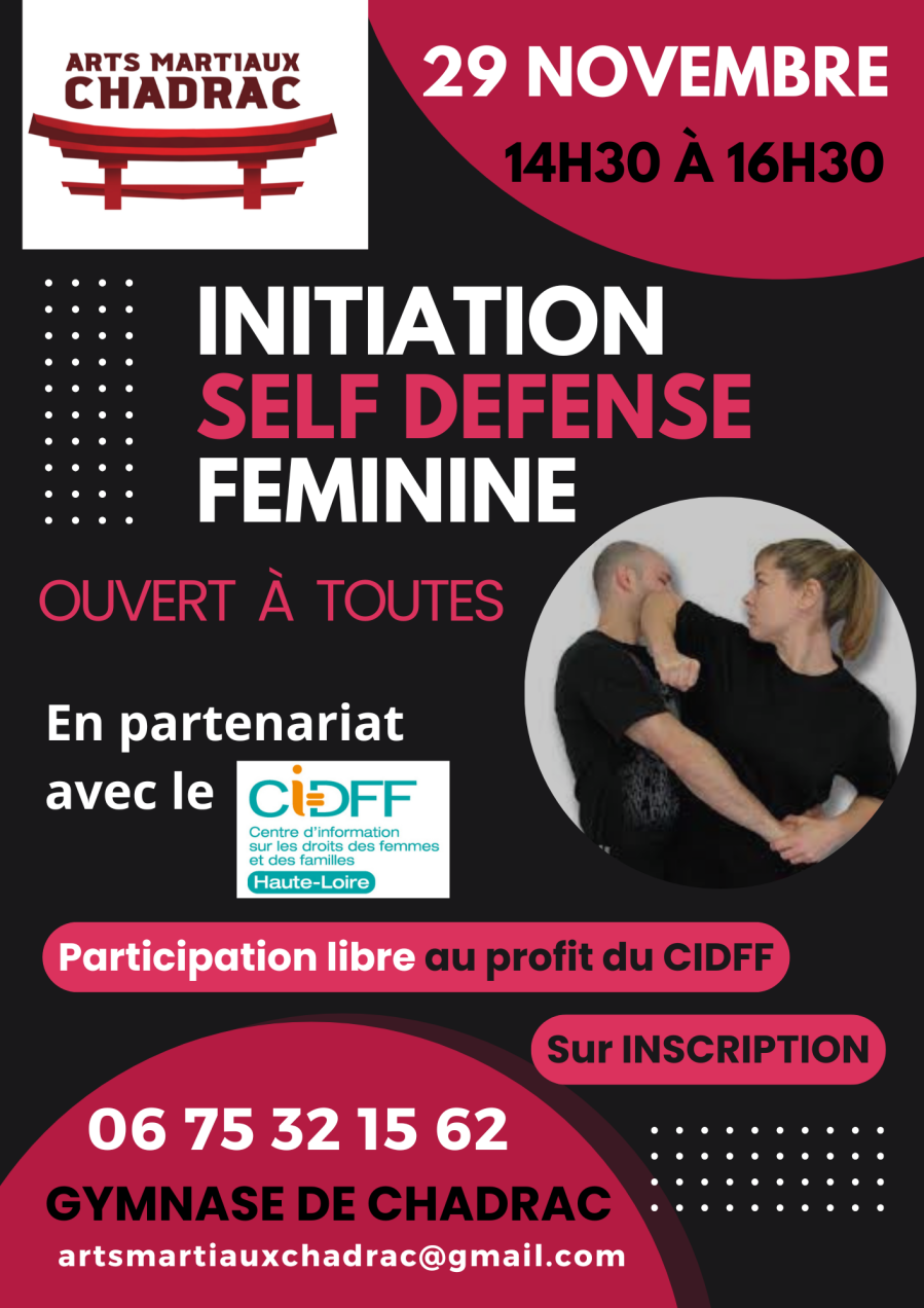 Vous souhaitez apprendre les bases du self-défense dans une ambiance bienveillante et solidaire ? Rejoignez les intervenants de l'association Arts Martiaux Chadrac, pour un atelier spécialement conçu pour les femmes !