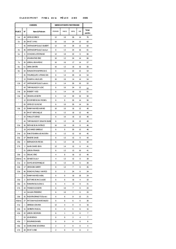 Ci-joint les dates de mêlée et le règlement (définitivement adopté mardi prochain à 19h00). Merci de nous signaler s'il y a des précisions ou des rectifications à ajouter.