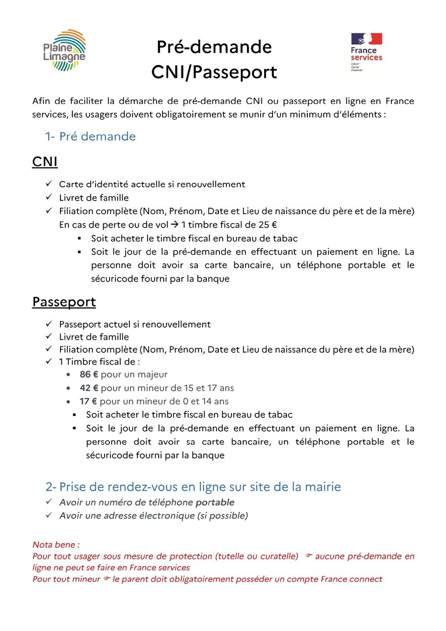 Pour faciliter vos pré-demandes de CNI et Passeport, France services Plaine Limagne vous accompagne !