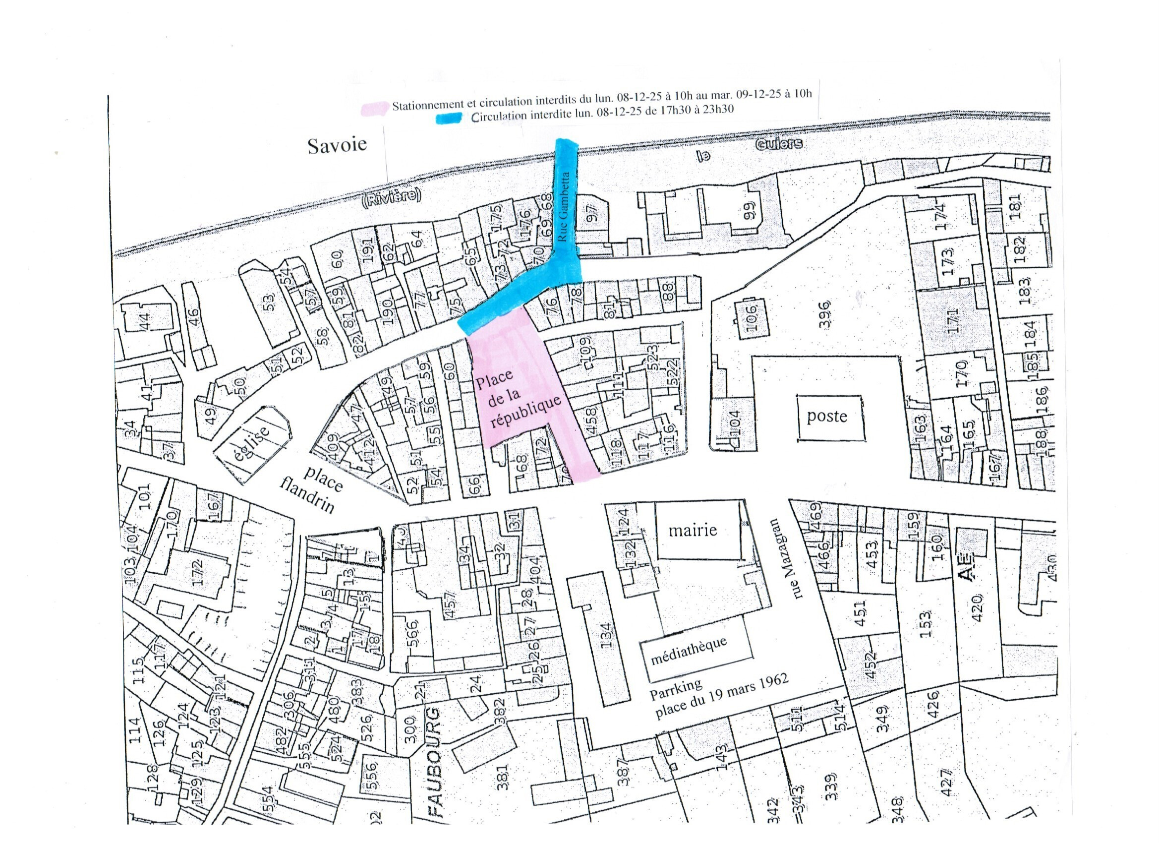 La circulation et le stationnement seront interdits à cette occasion en Isère dans les lieux surlignés du plan ci-joint.