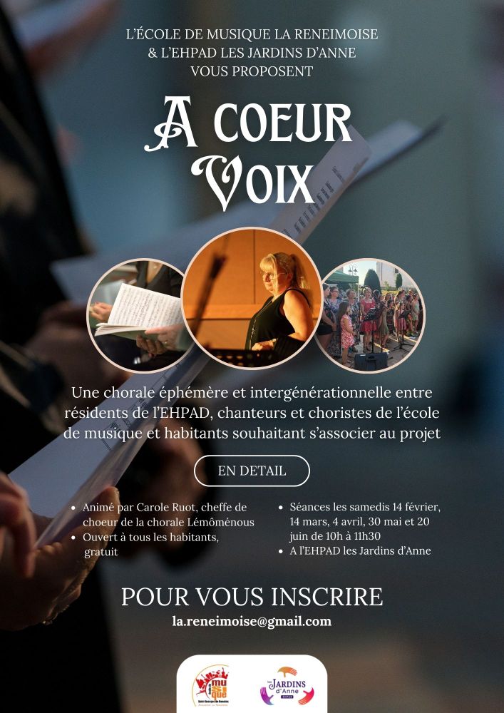 L'Ecole de musique La Reneimoise et l’EHPAD Les Jardins d’Anne s'associent pour lancer le projet « À Cœur Voix ».