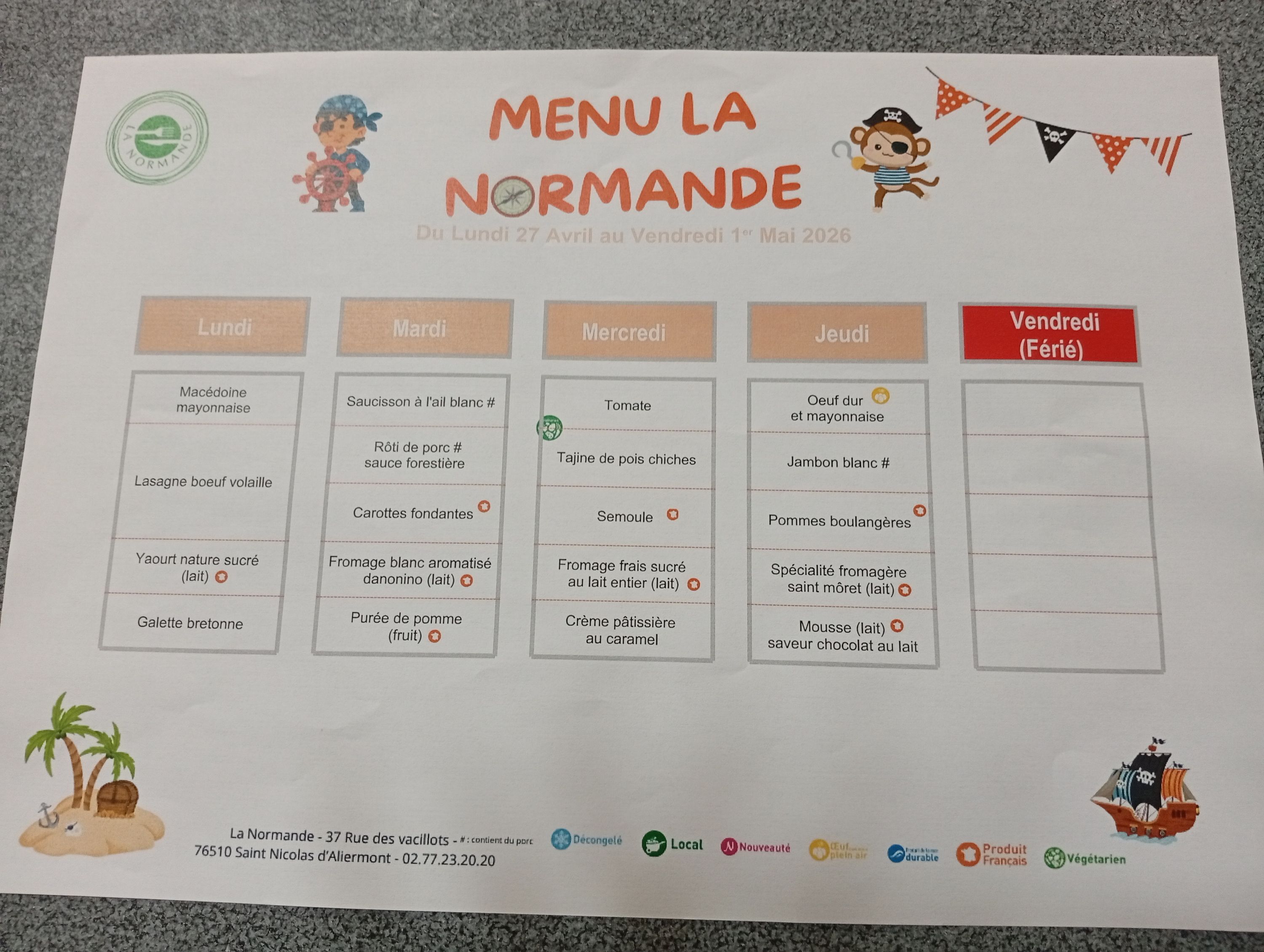 Voici les menus pour la semaine de rentrée des vacances d Avril.