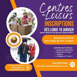 Ouverture des inscriptions aux centres de loisirs de Baignes et Barbezieux dĂšs lundi 19 janvier 2026.