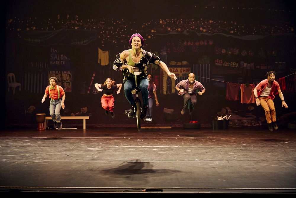 Sur scène, dix jeunes artistes livrent un spectacle haut en couleurs mêlant acrobatie, cirque contemporain et danses sud-africaines, faisant vibrer l’idéal de la « nation arc-en-ciel » cher à Nelson Mandela.
