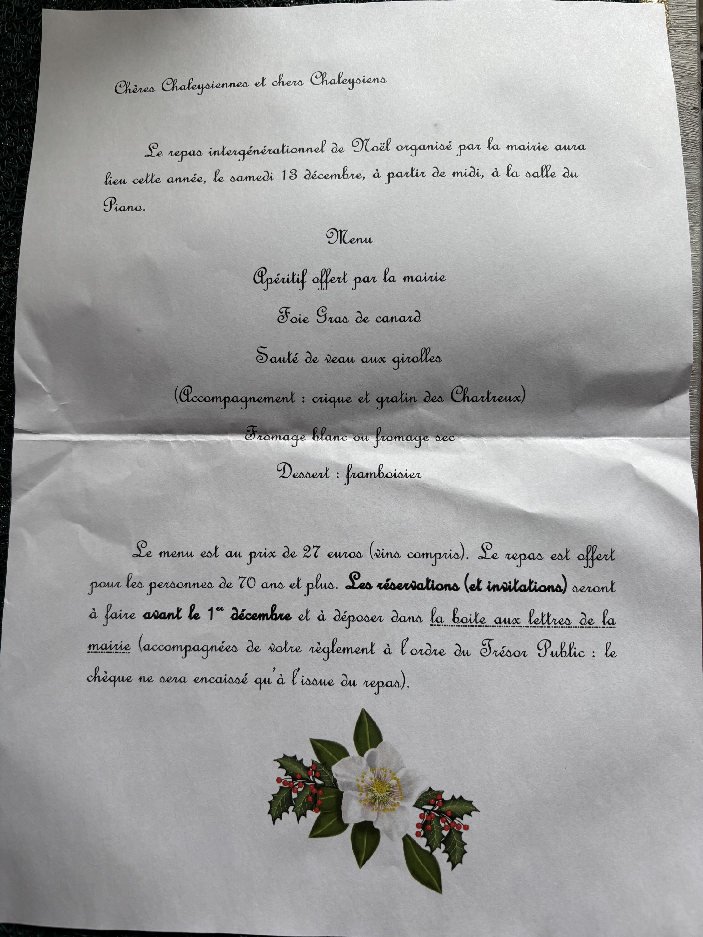 est à déposer avant le lundi 1er décembre prochain dans la boîte aux lettres de la mairie