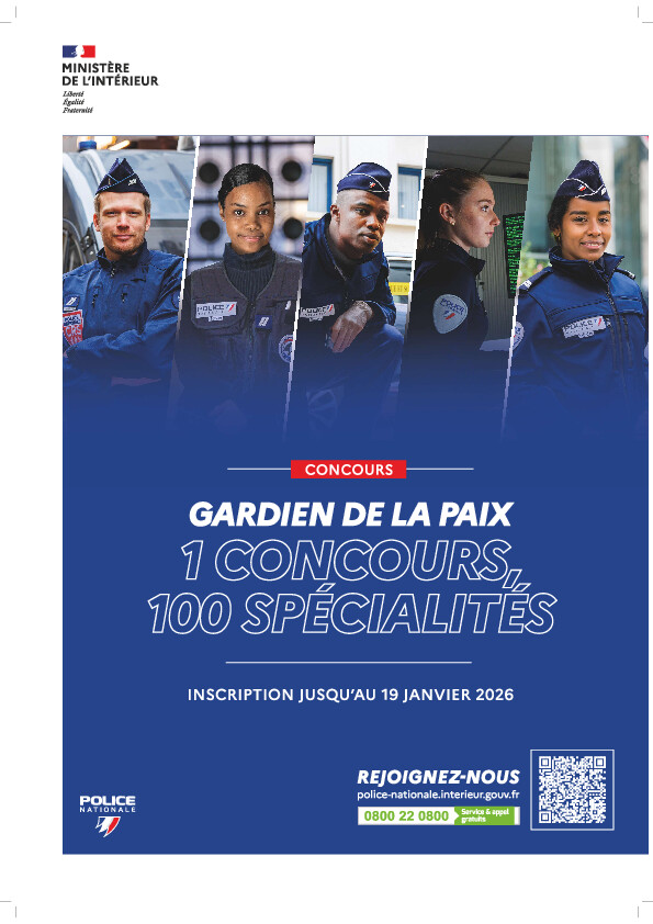 Ouverture du concours de Gardien de la Paix au sein de la Police Nationale.