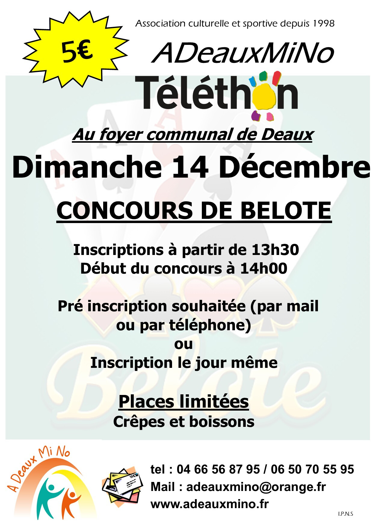 L'association Adeauxmino organise, le 14 décembre, un concours de belote solidaire.