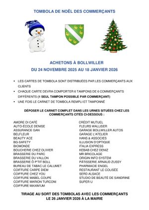 A l'approche des fêtes de Noël, Monsieur le Maire Jean-Paul JULIEN, les élus ainsi que l'ensemble du personnel communal de Bollwiller vous souhaitent à toutes et à tous de très belles fêtes de fin d'année !