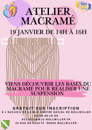 du 5.02.2026 au 12.03.2026 du 9 h 30 Ã 10 h 30 Ã la MJC Centre social (salle couture)