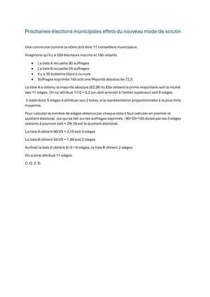 Afin de bien comprendre ce qui se passe dans ce mode de scrutin, nous vous joignons un exemple fictif tiré d'un document venant d'une préfecture.