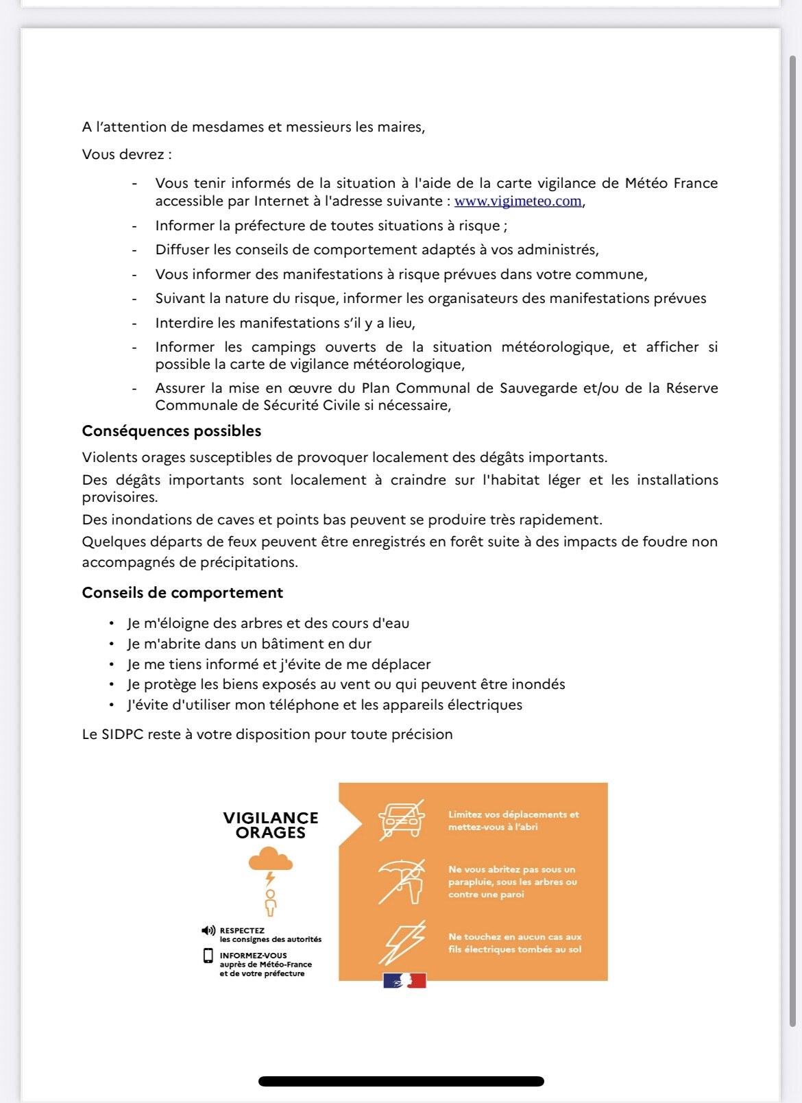 Le SIDPC reste à votre disposition pour tout complément d'information.