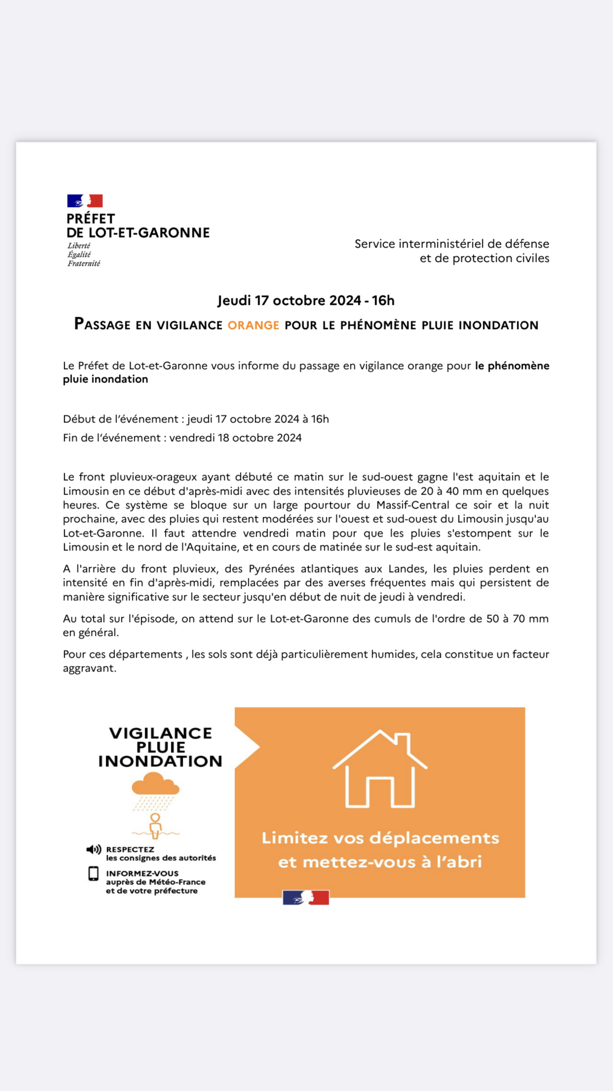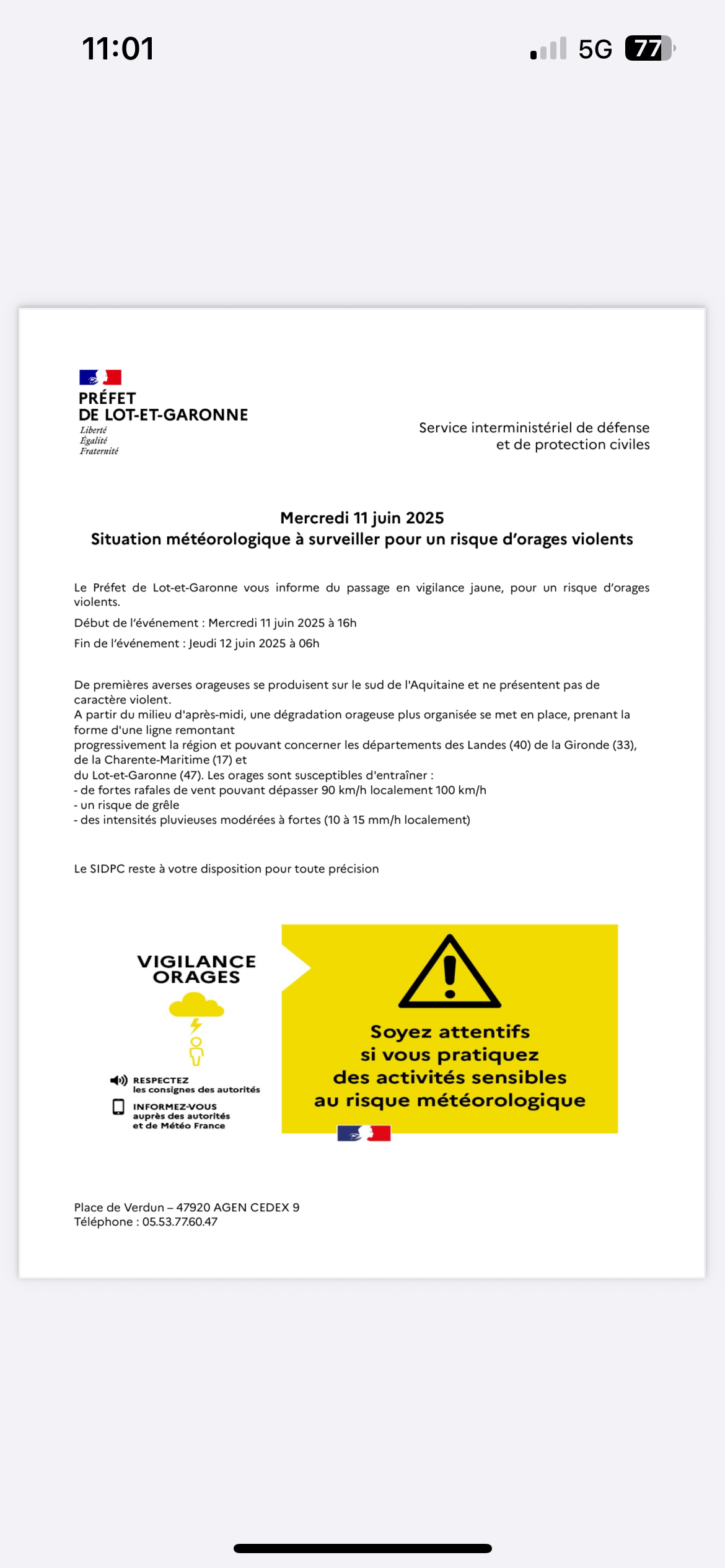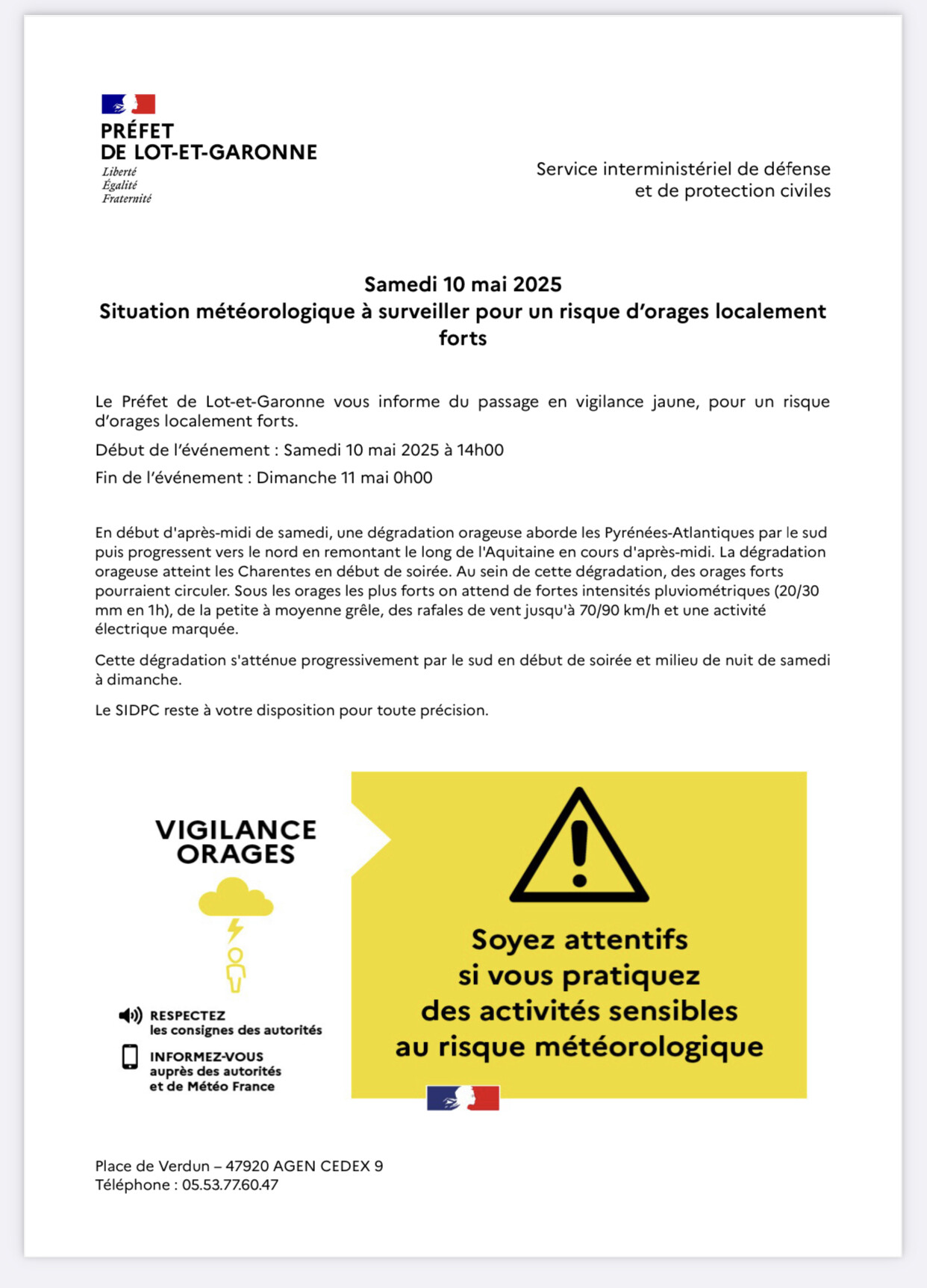 🚨Le préfet de Lot-et-Garonne vous informe d'une situation météorologique à surveiller pour risque d'orages à compter de ce jour 18h 🚨