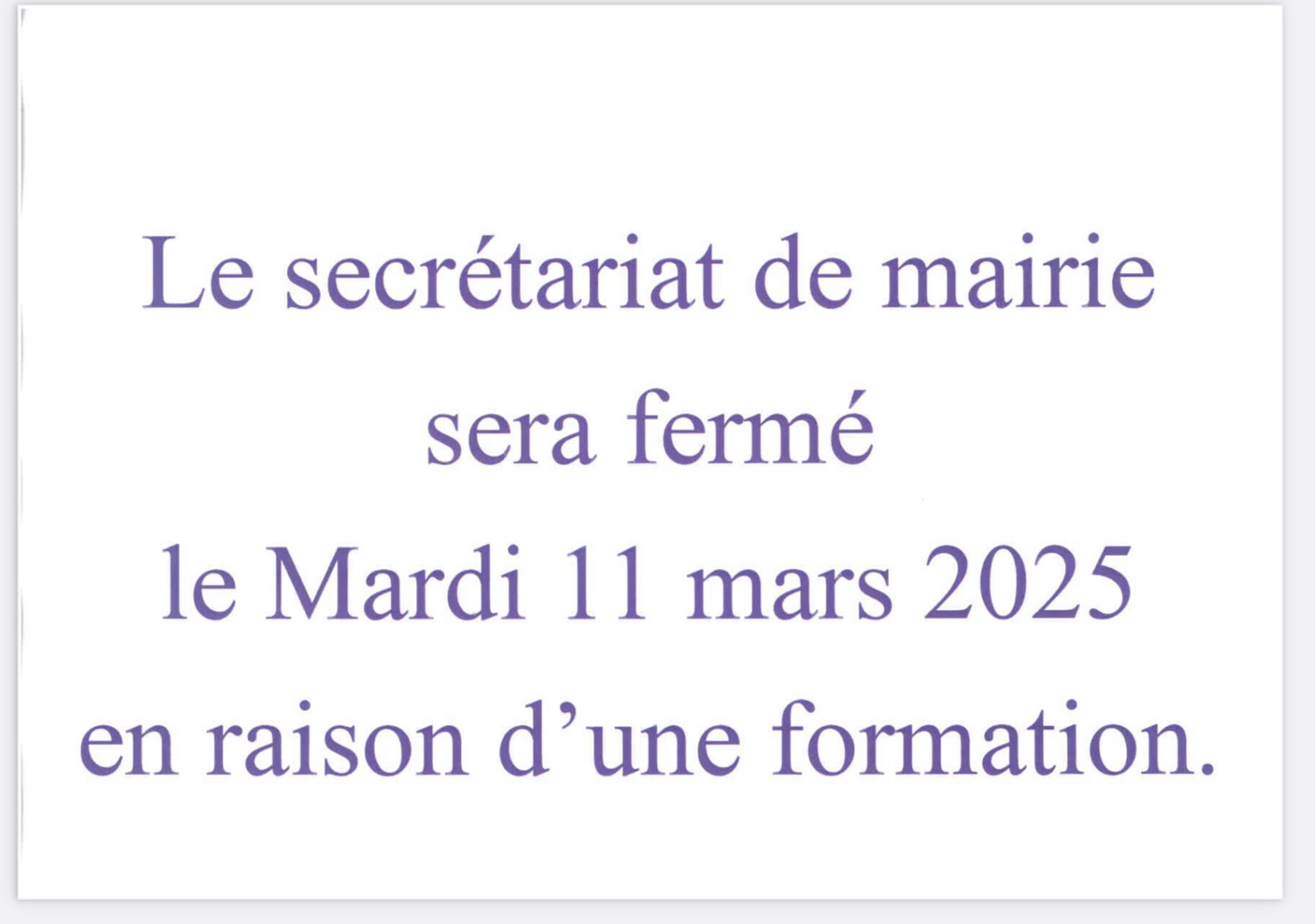 Nous vous informons que la mairie sera fermée demain toute la journée suite au mouvement de grève ainsi que l’école.