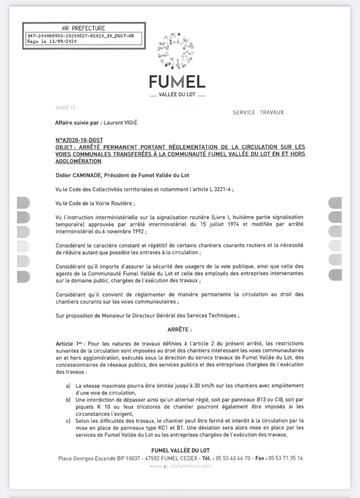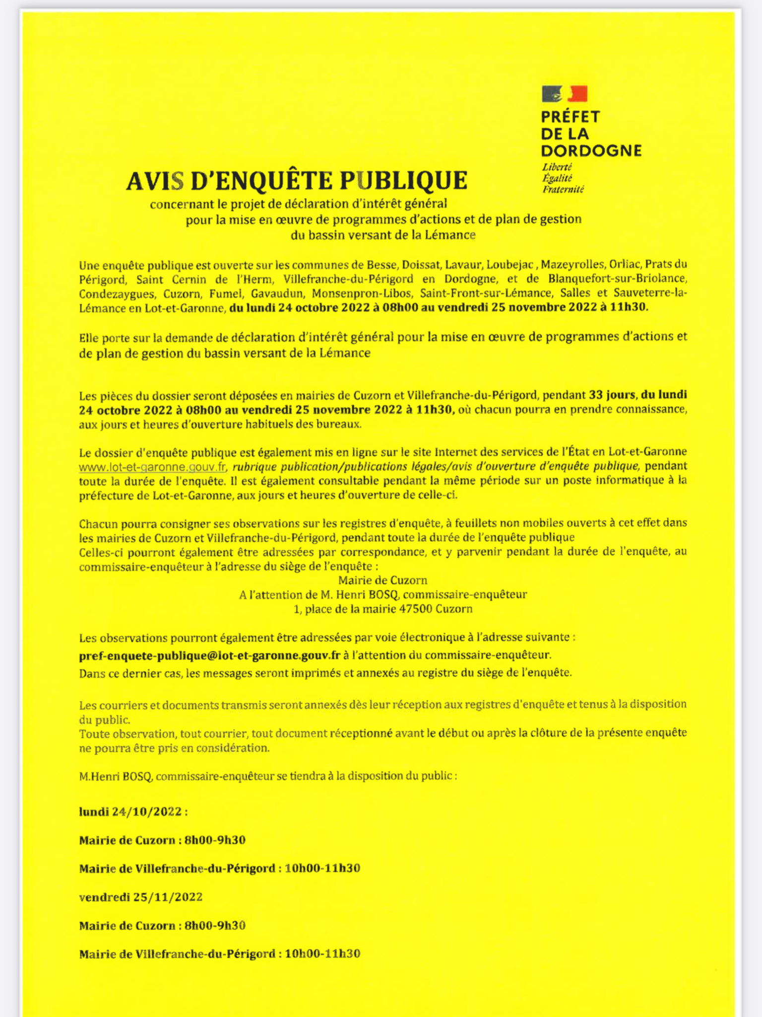 Afin que les habitants et les éleveurs notamment soient informés, nous vous demandons de bien vouloir rendre public cet avis par tout moyen de communication dont dispose la collectivité.